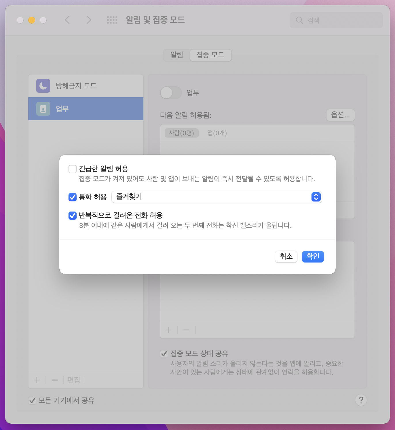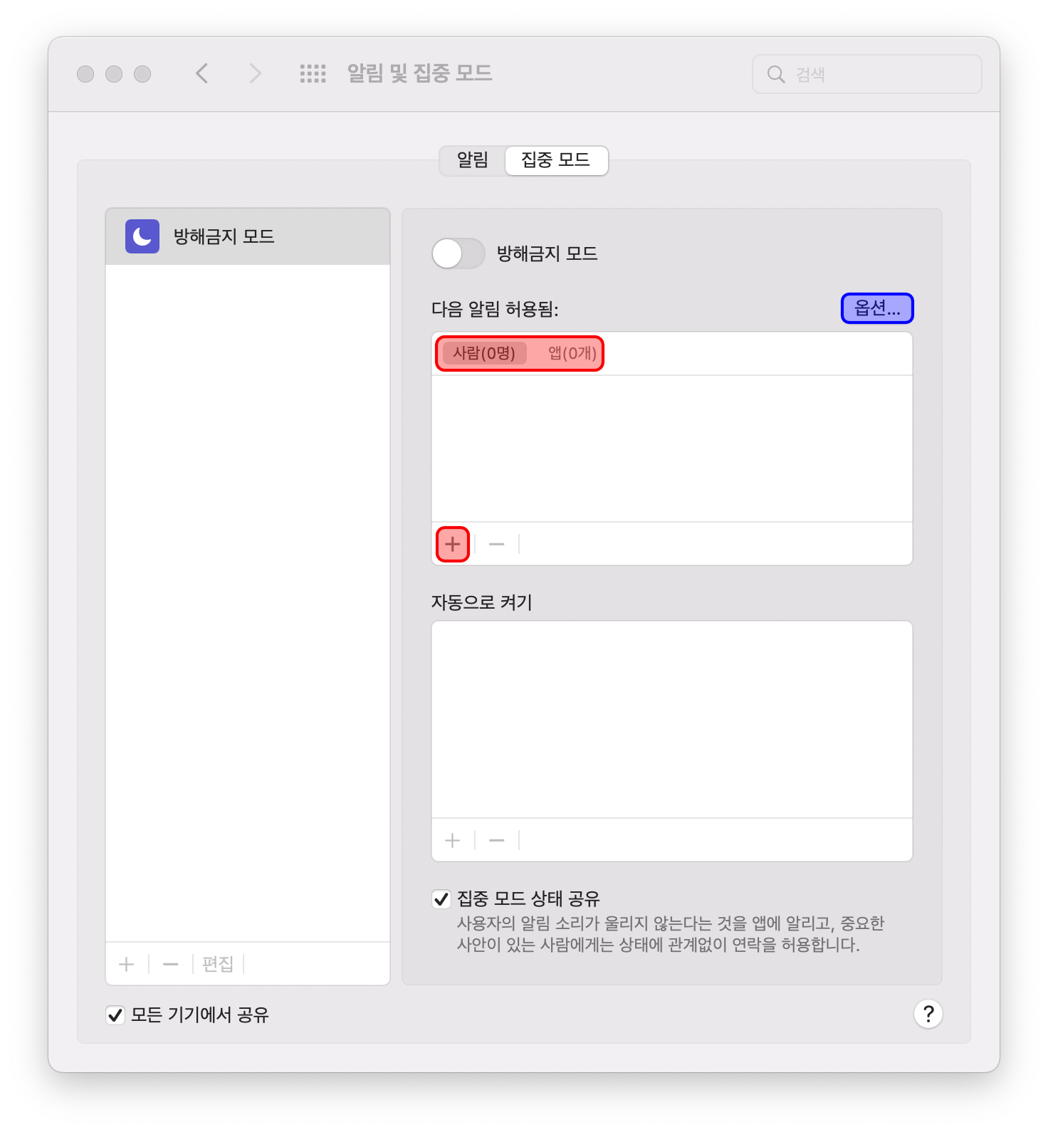 집중 모드 설정하기