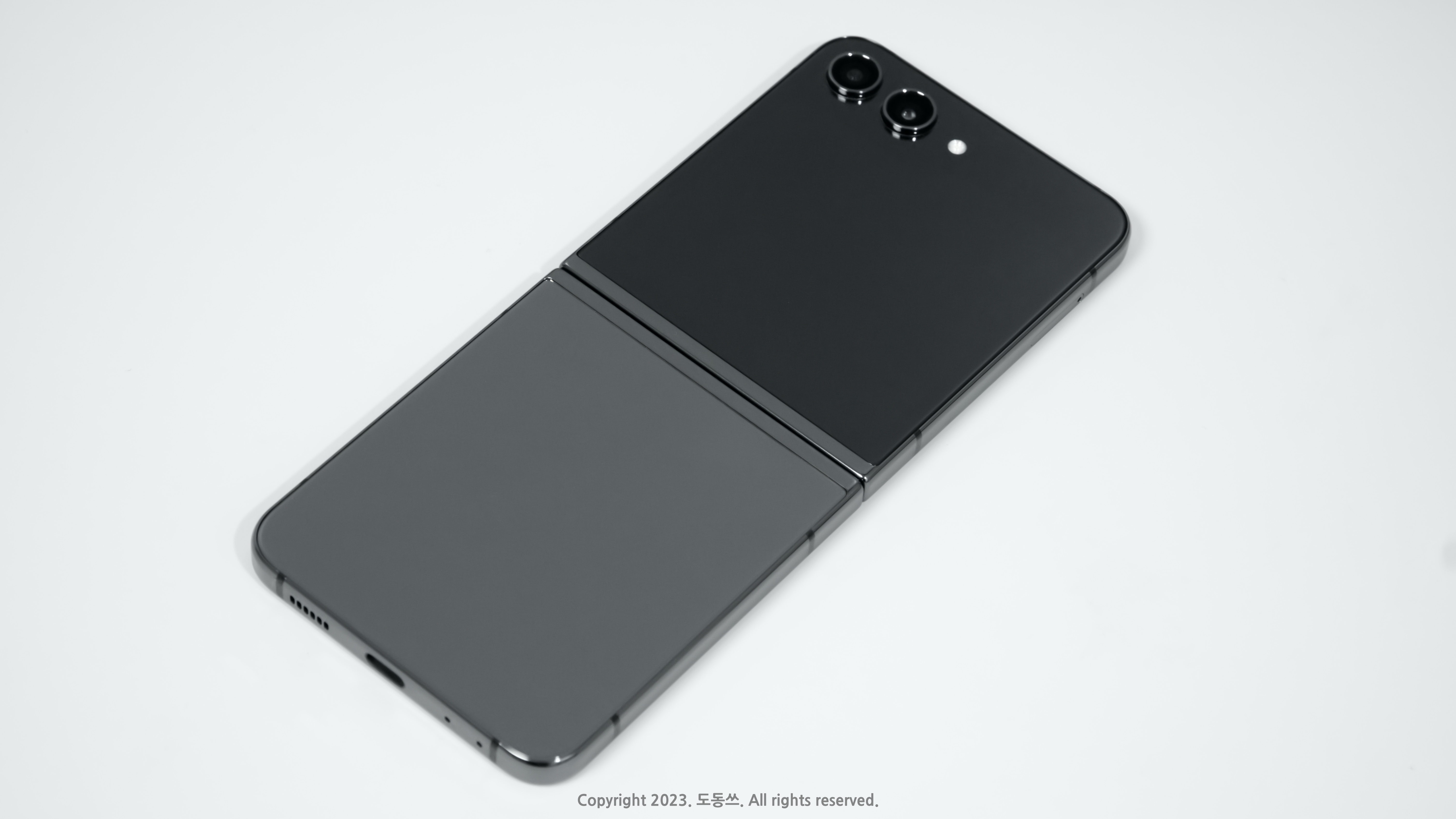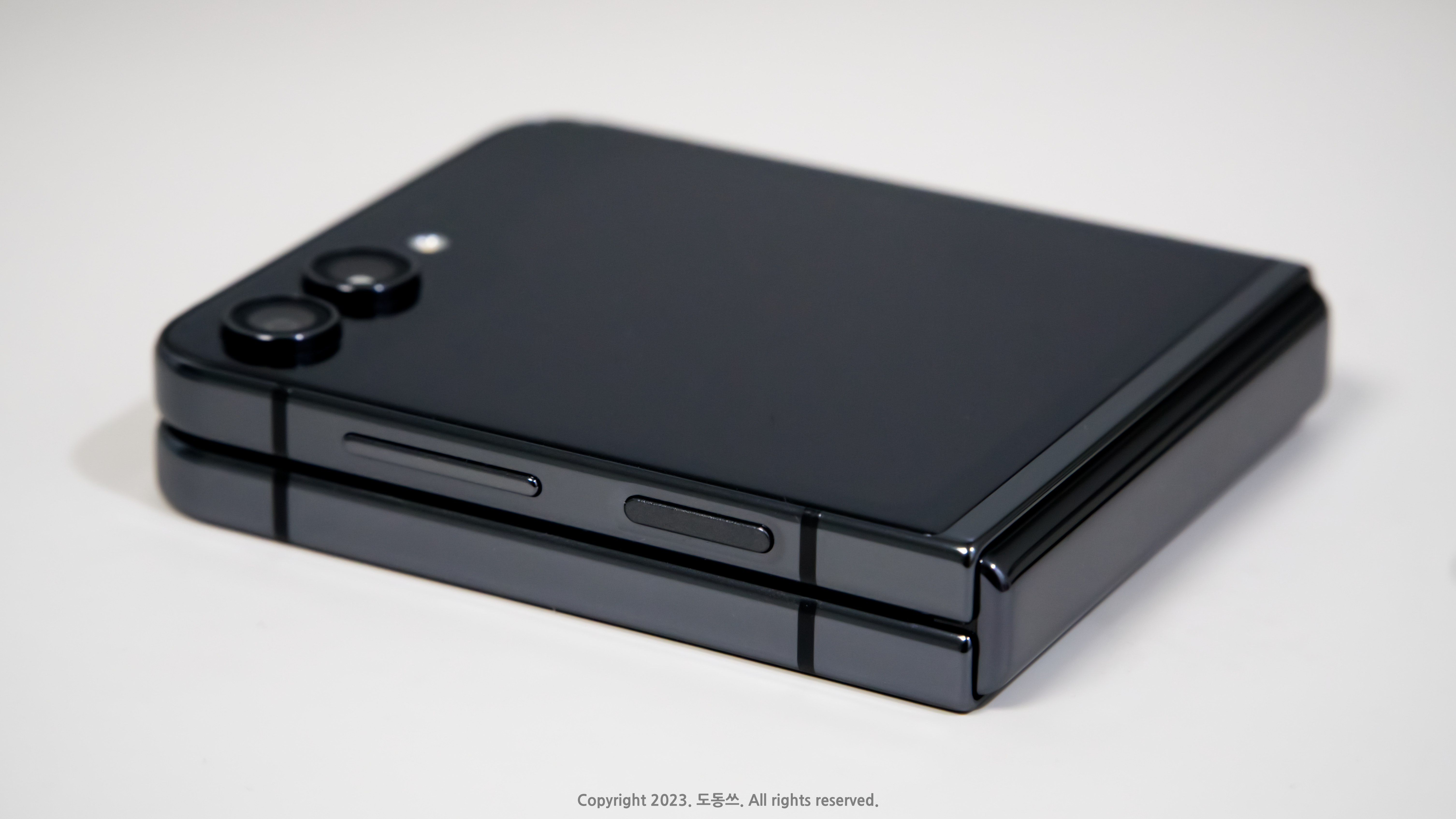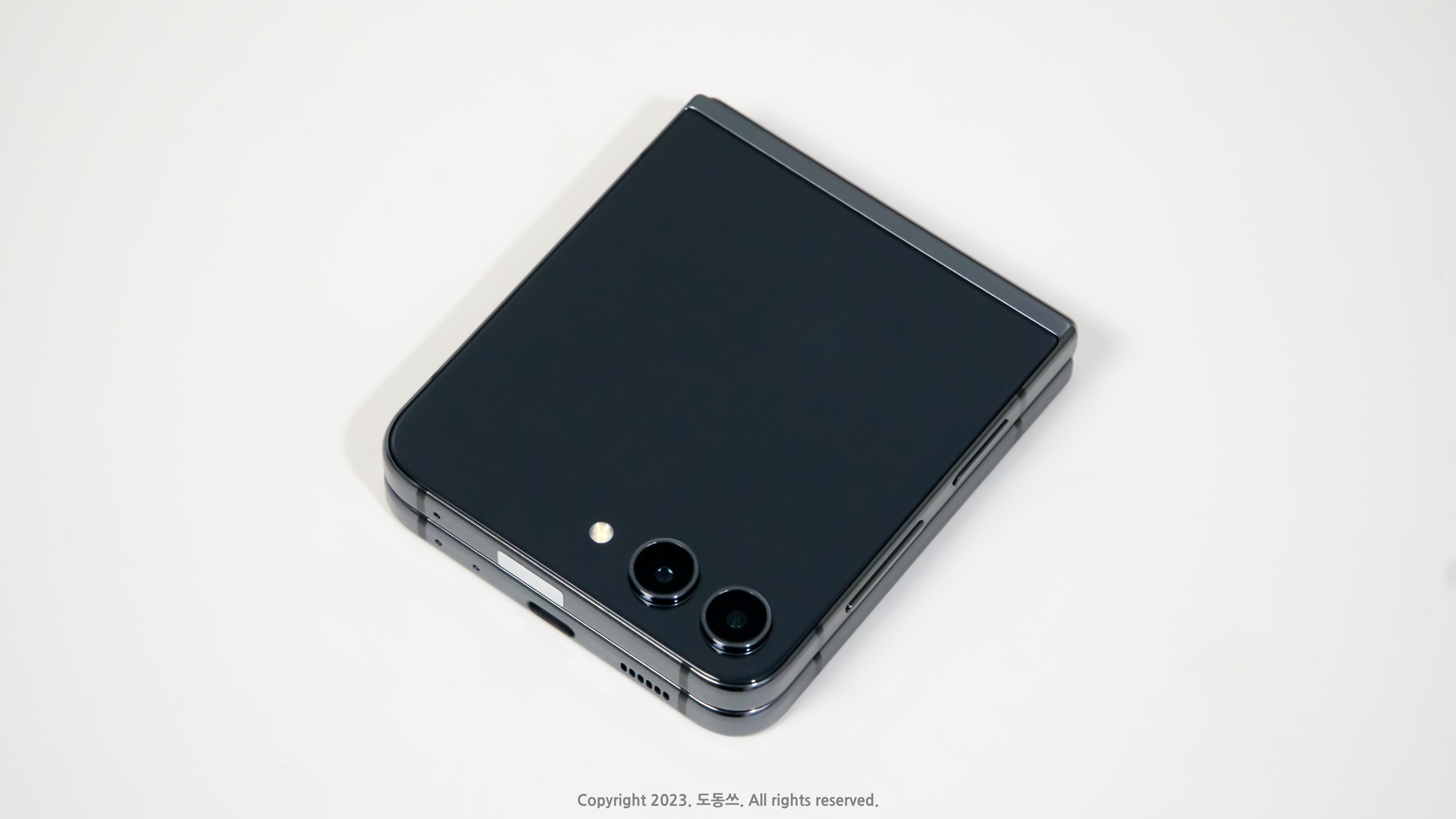 이번 갤럭시 Z 플립5의 커버 스크린(상단) 부분은 모두 검은색으로 처리되어 있는데요. 이런 이유로 그라파이트 색상의 경우에는 다른 색상과 비교했을 때, 보다 일체감 있게 느껴집니다. 스크린 부분은 손가락 자국이 잘 묻어나기 때문에 주기적으로 닦아서 관리가 필요해 보입니다.