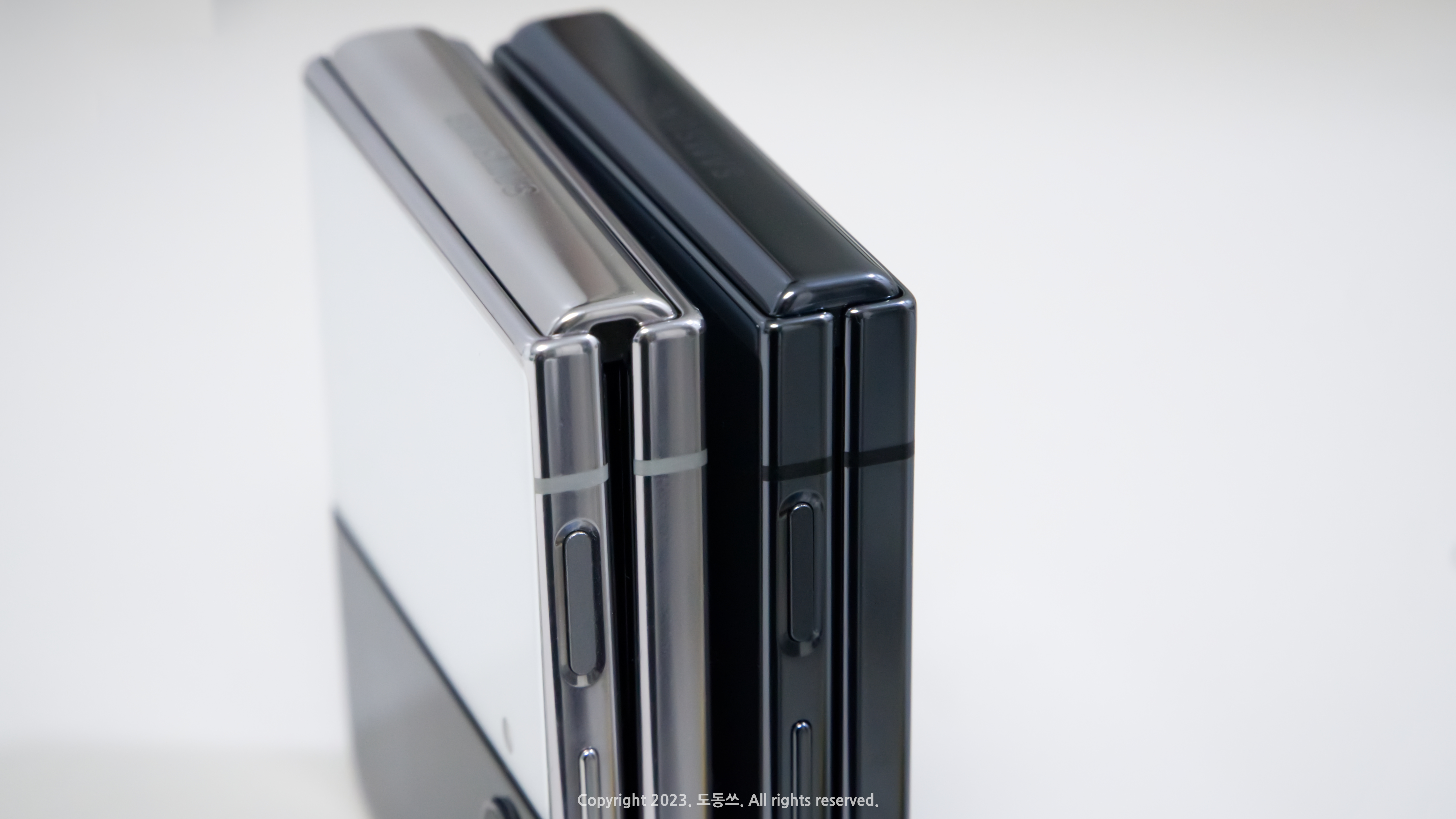 이전 Z 플립4와 힌지 부분을 비교해 보면, 기존 시리즈와 힌지 부분에 많은 차이가 있는 것을 확인할 수 있습니다.