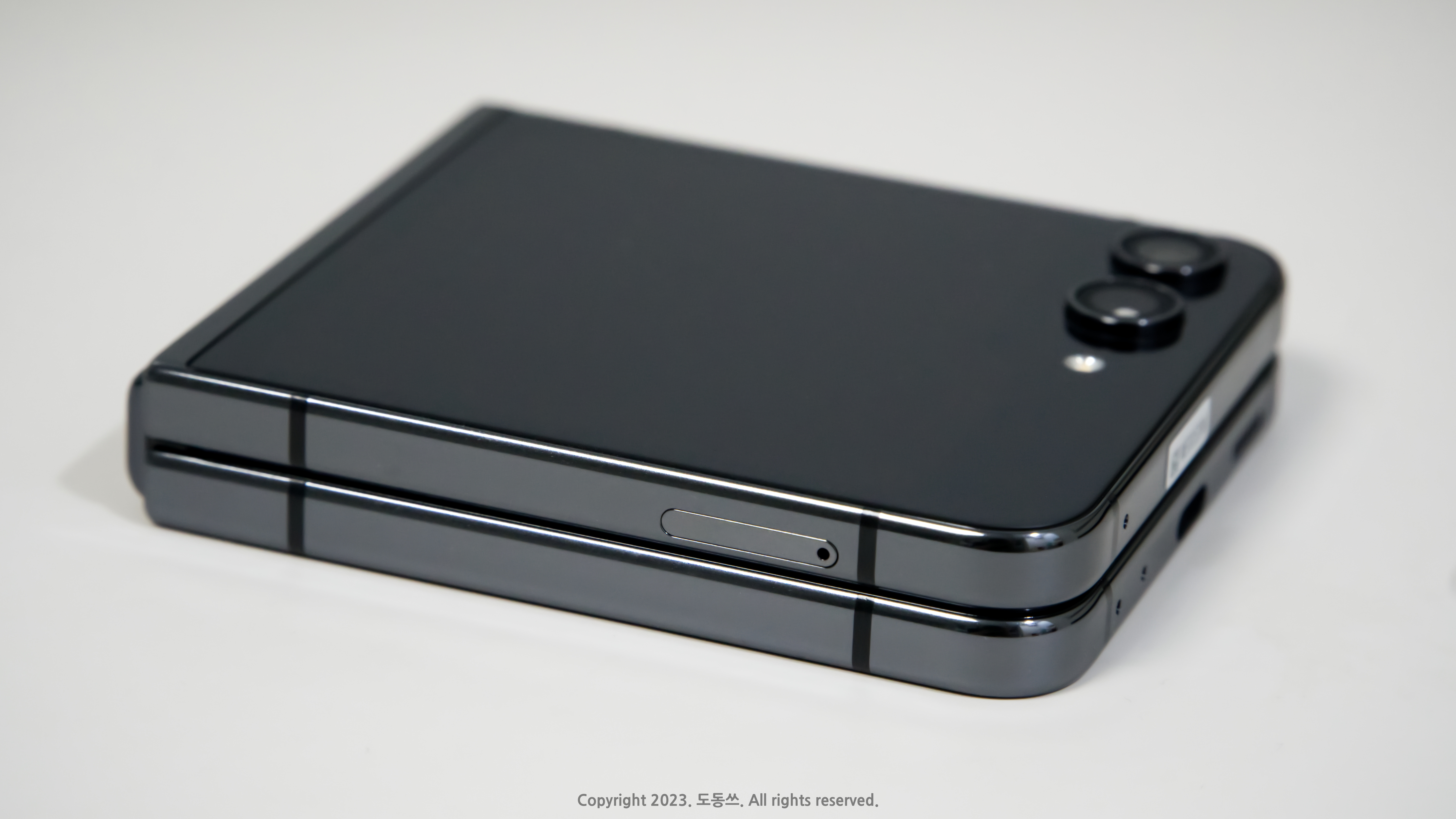 이번 갤럭시 Z 플립5는 새로운 힌지 기술이 적용되어 기존 플립 시리즈 보다 접었을 때, 사이 공간이 많이 줄어들었습니다. 덕분에 잡았을 때, 조금 더 얇아진 것이 느껴집니다.