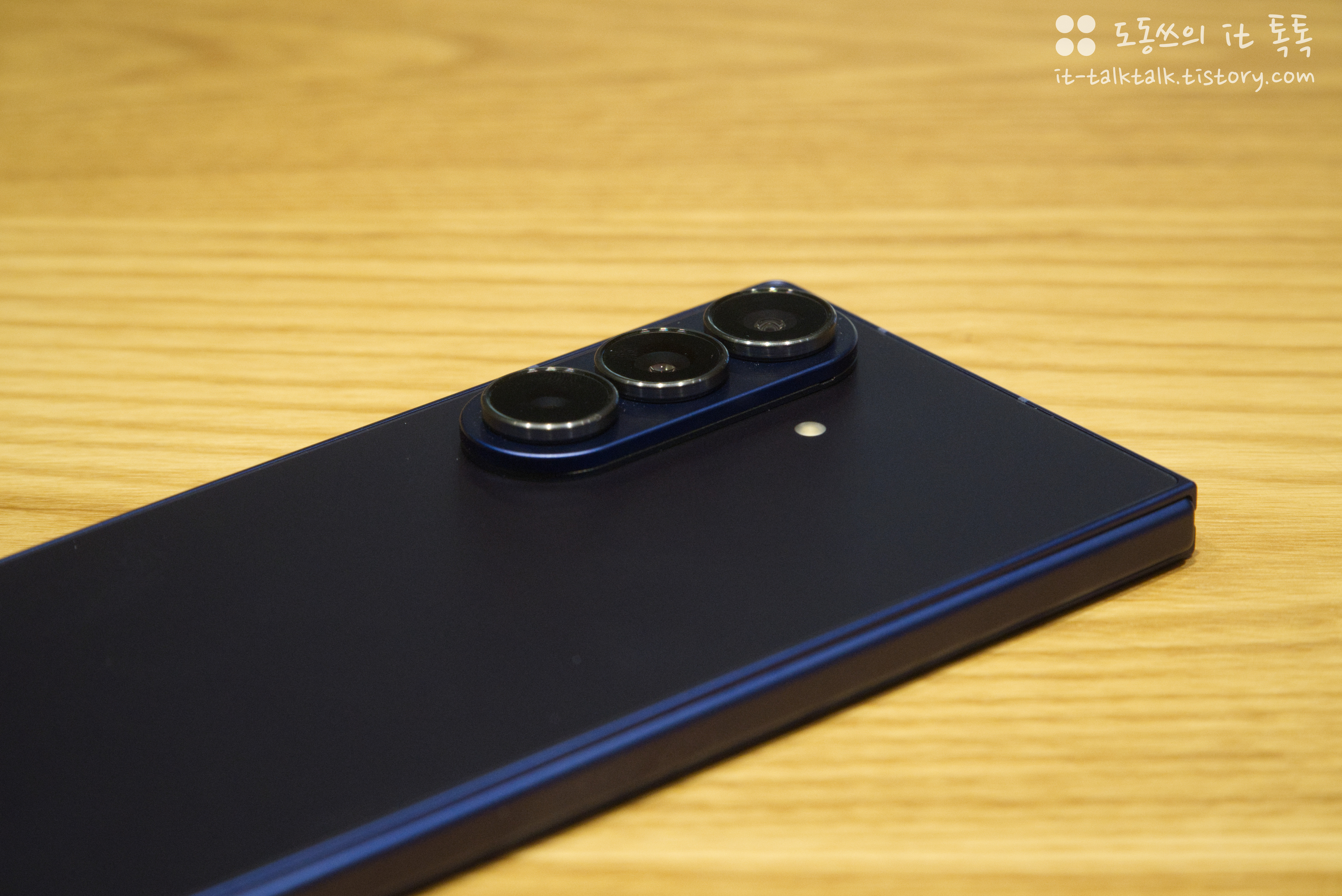 이번 폴드 시리즈의 핵심 업그레이드라고 할 수 있는 후면 카메라 모습인데요. 기기의 두께가 전체적으로 얇아지면서, 카메라가 조금 더 튀어나와 있다는 느낌을 받았습니다. 카메라 섬으로 카메라 주변에 한 번 더 처리하면서 디자인적으로 완성된 느낌이 들었고, 이전 세대에 있었던 카메라 렌즈 주변에 링 디자인 요소는 빠졌네요.