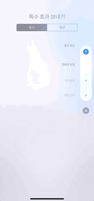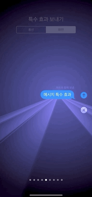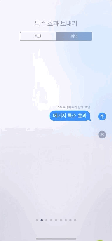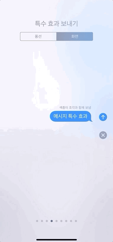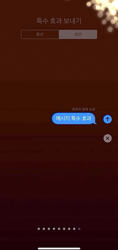 메시지 풍선에 효과 외에도 화면 전체에 메시지를 전송할 때 효과를 선택할 수 있는데요. 총 9개의 효과가 준비되어 있습니다.