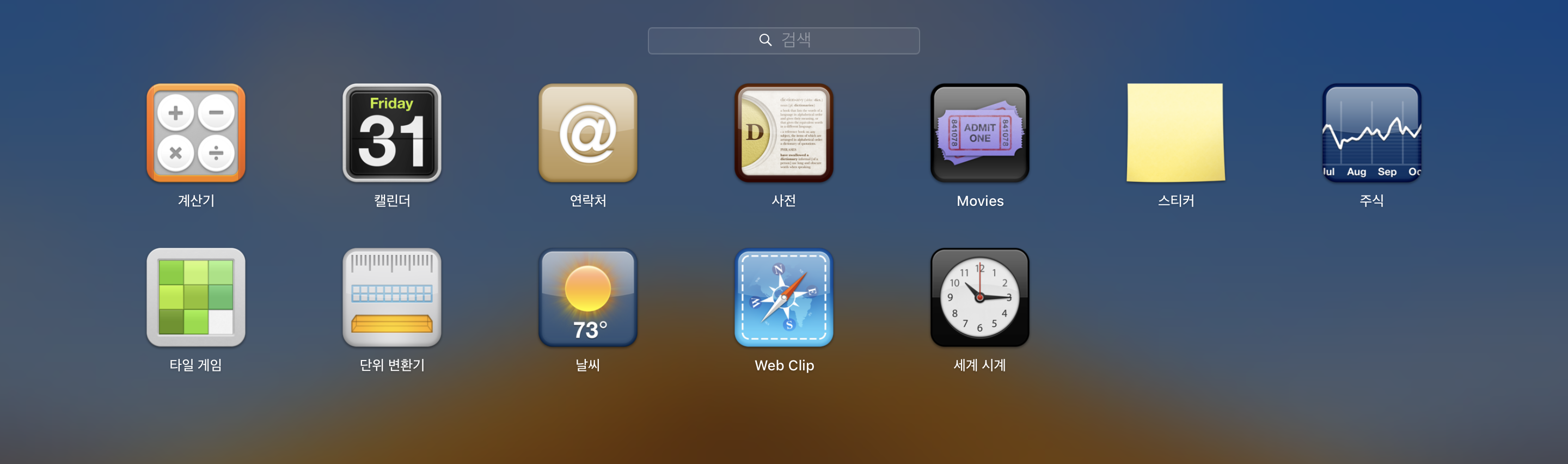 Dashboard로 들어가는 방법은 Mission Control의 핫 코너 기능을 사용하거나, 트랙패드의 제스처를 통해 접근하는 방법이 있는데요. 저는 트랙패드 제스처로 들어가는 방법을 선호하는 편입니다.