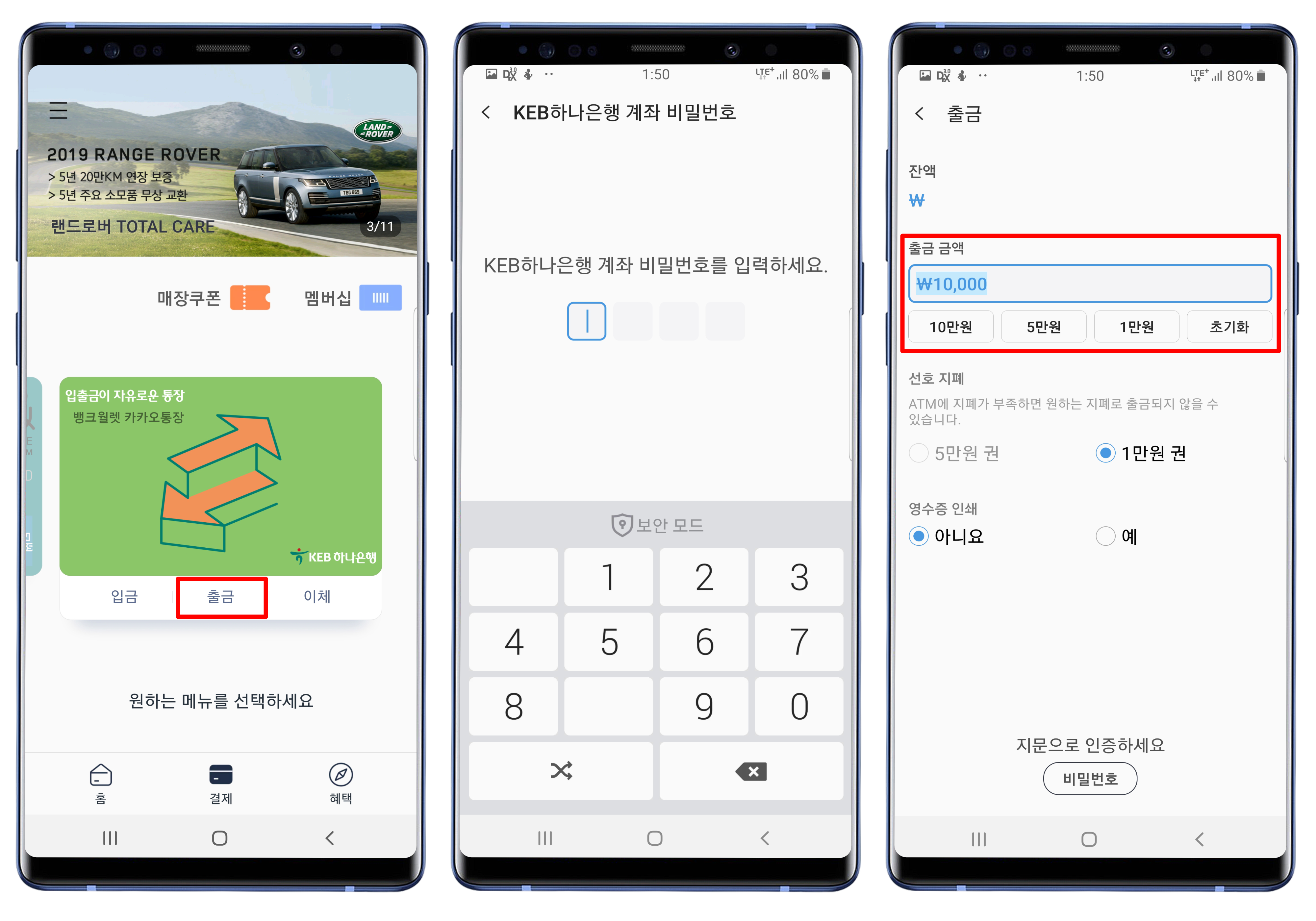 - 생체 인식 및 비밀번호를 입력한 후, ATM 기기에 태그 합니다. (NFC가 켜져 있는지 확인)