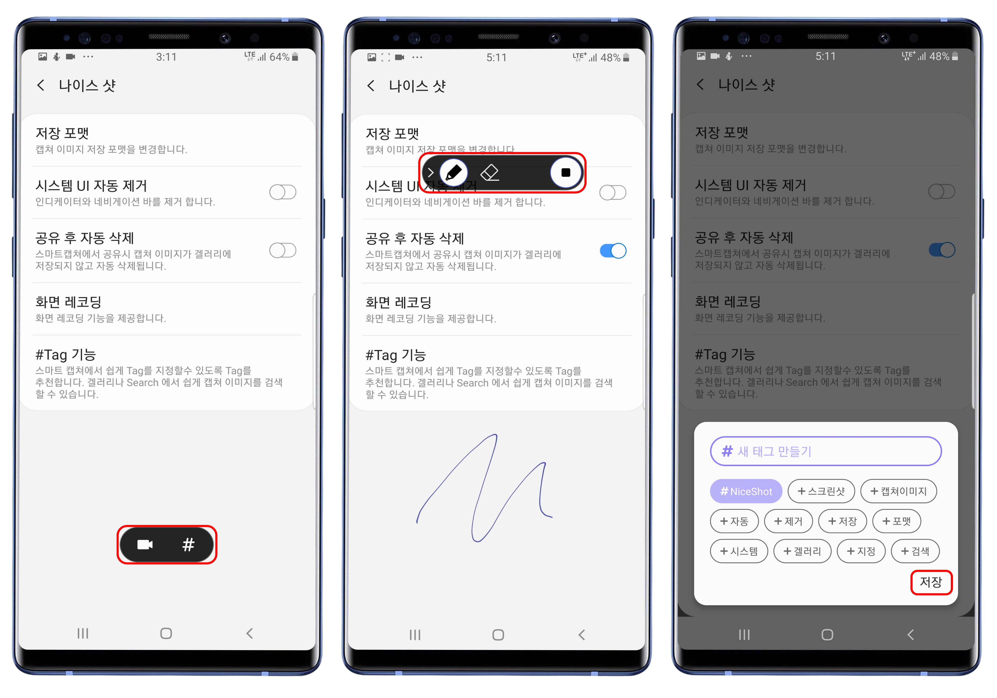 ○ 화면 녹화 및 태그 기능