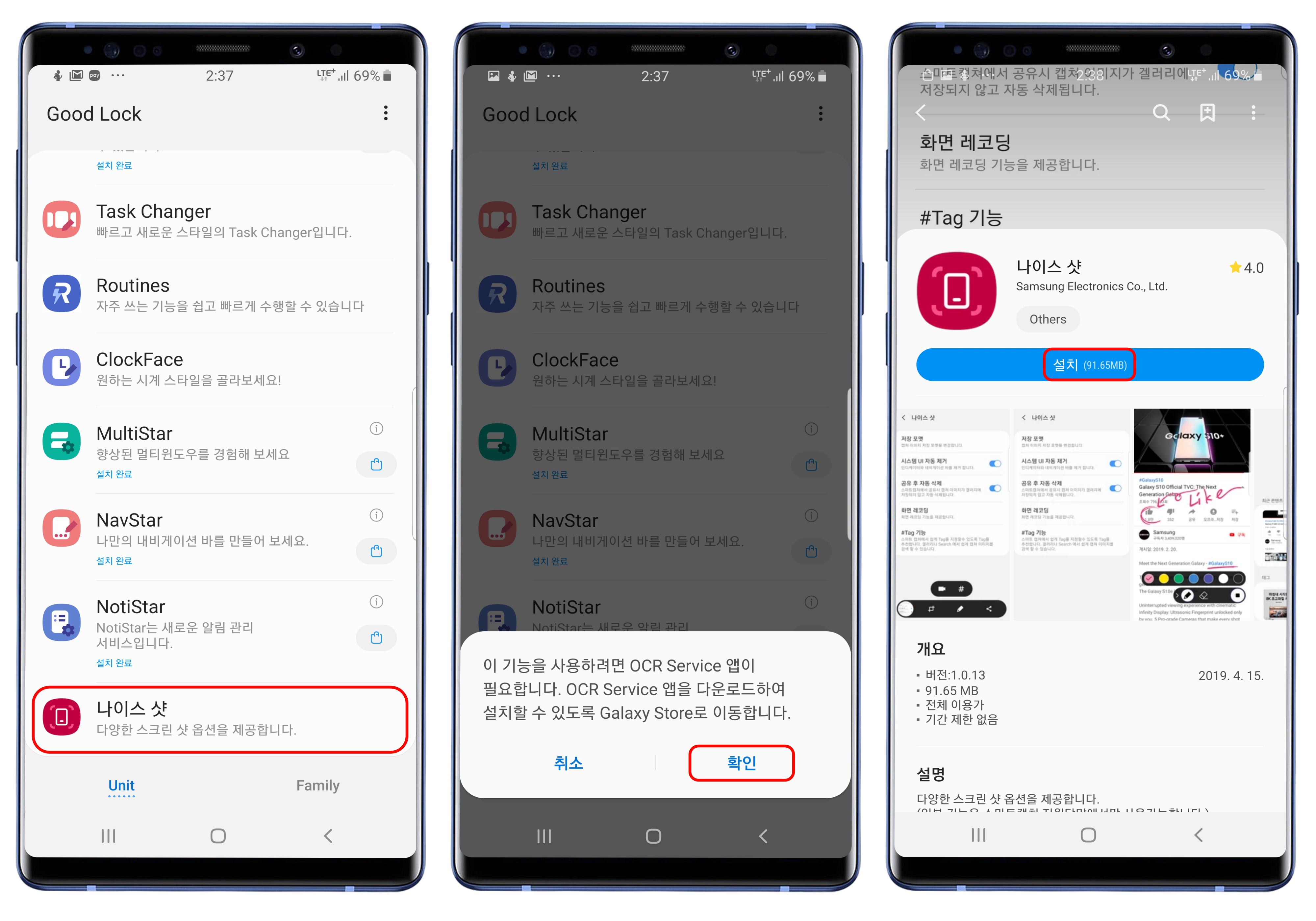 삼성의 굿락(GoodLock) 앱을 실행하고, 가장 하단에 있는 나이스 샷 메뉴를 눌러 설치를 진행합니다.