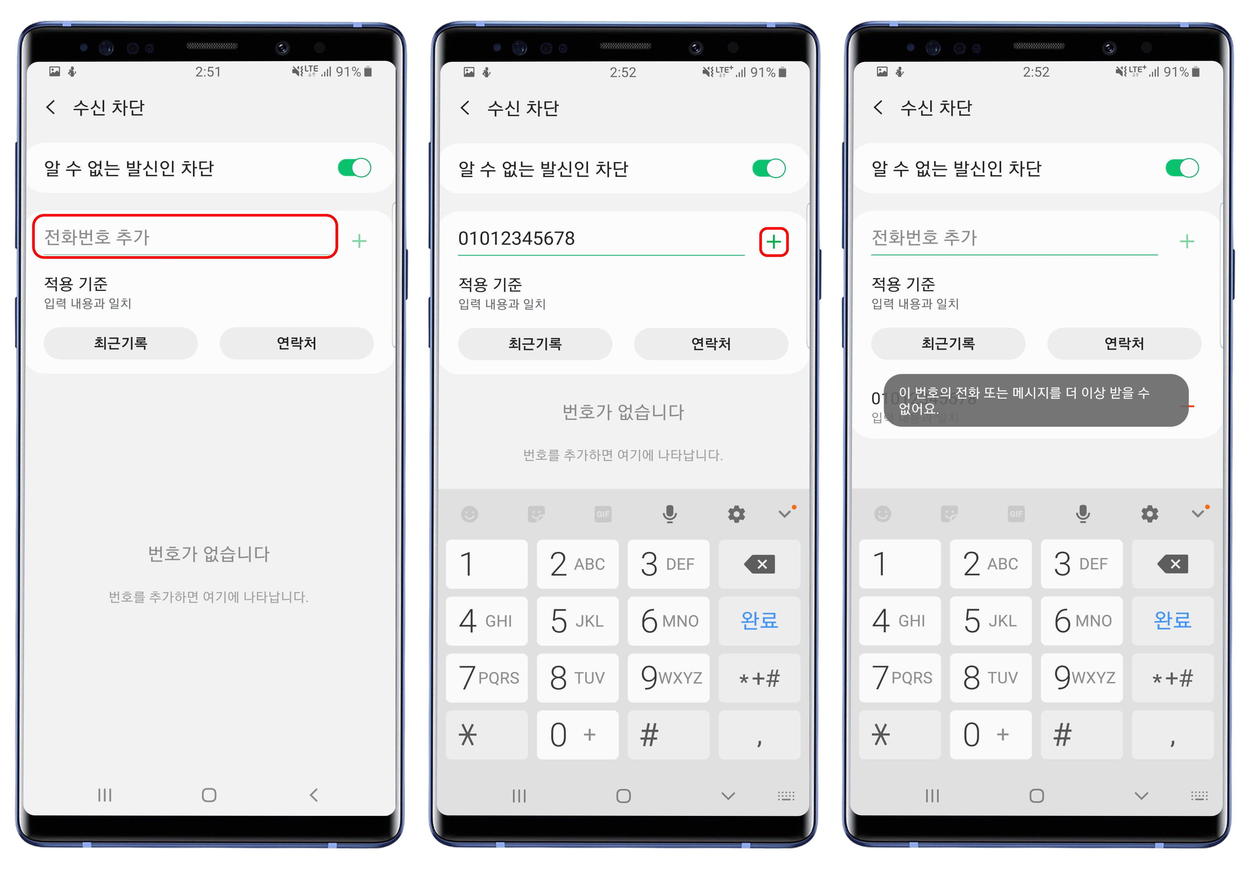 수신 차단 번호 추가하기
