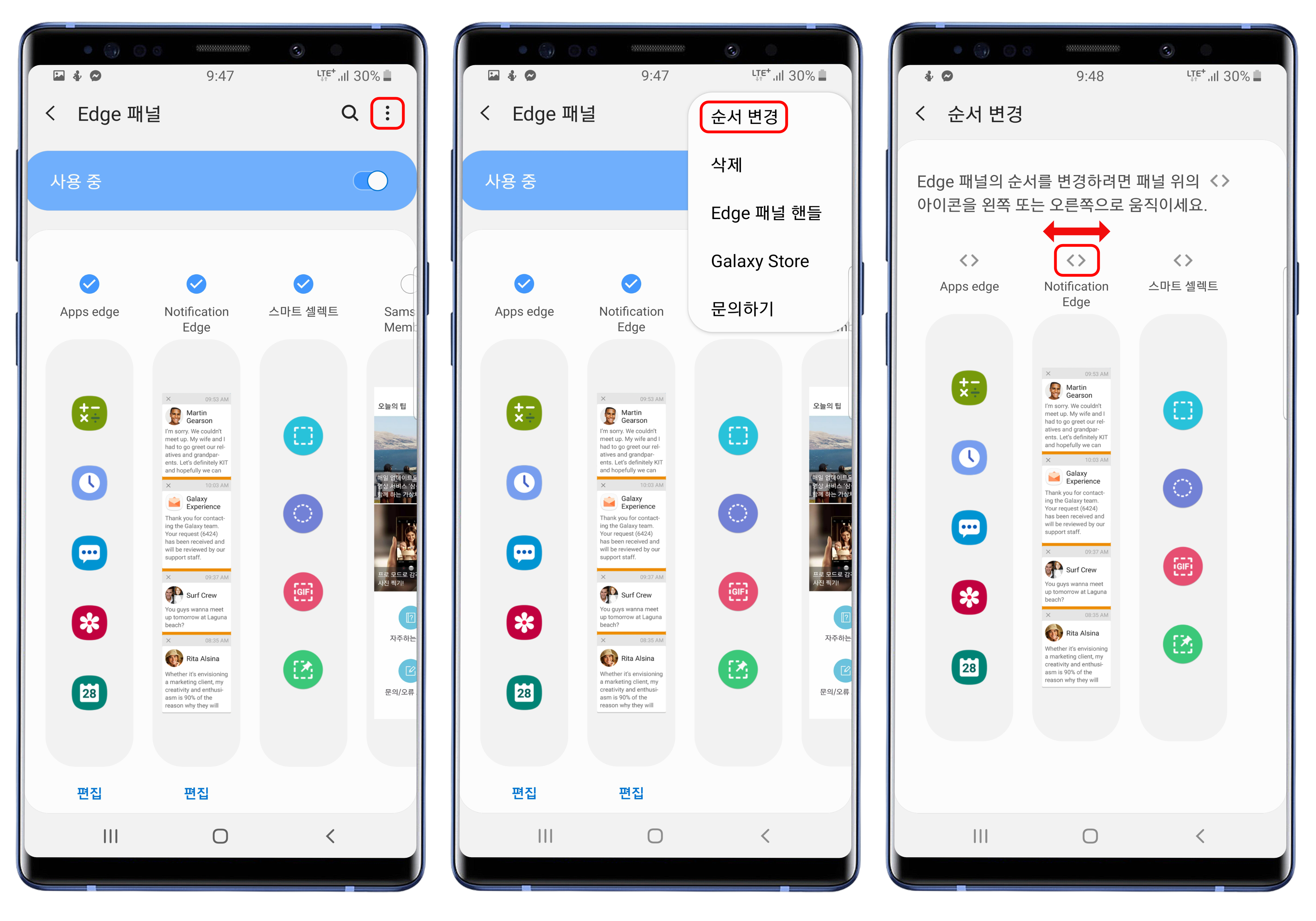 Edge 패널의 순서 변경하기