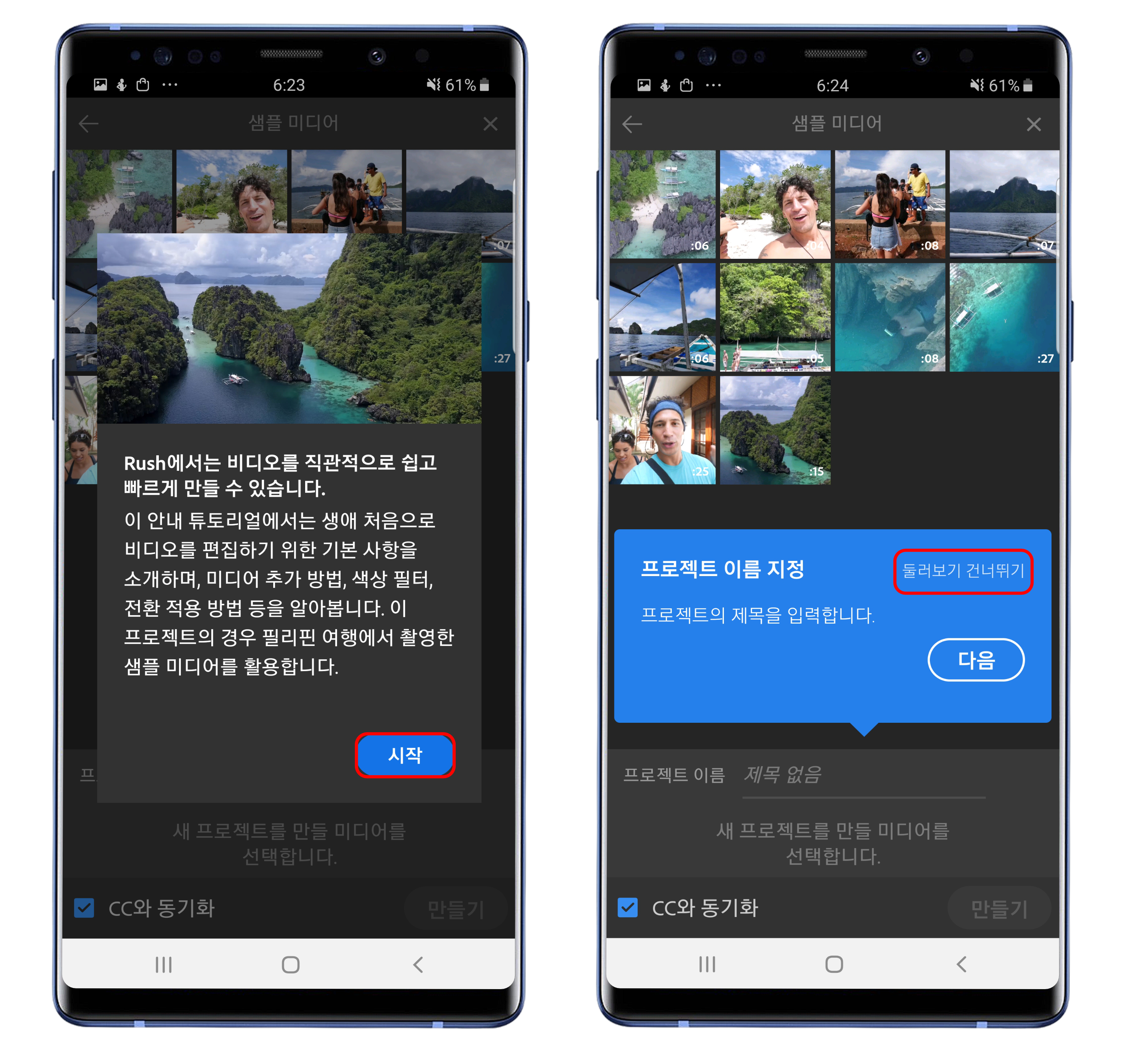 설치가 끝나고 앱을 실행해보면, 시작 화면에서도 갤럭시를 위해 디자인이 되었다는 것이 눈에 띕니다.