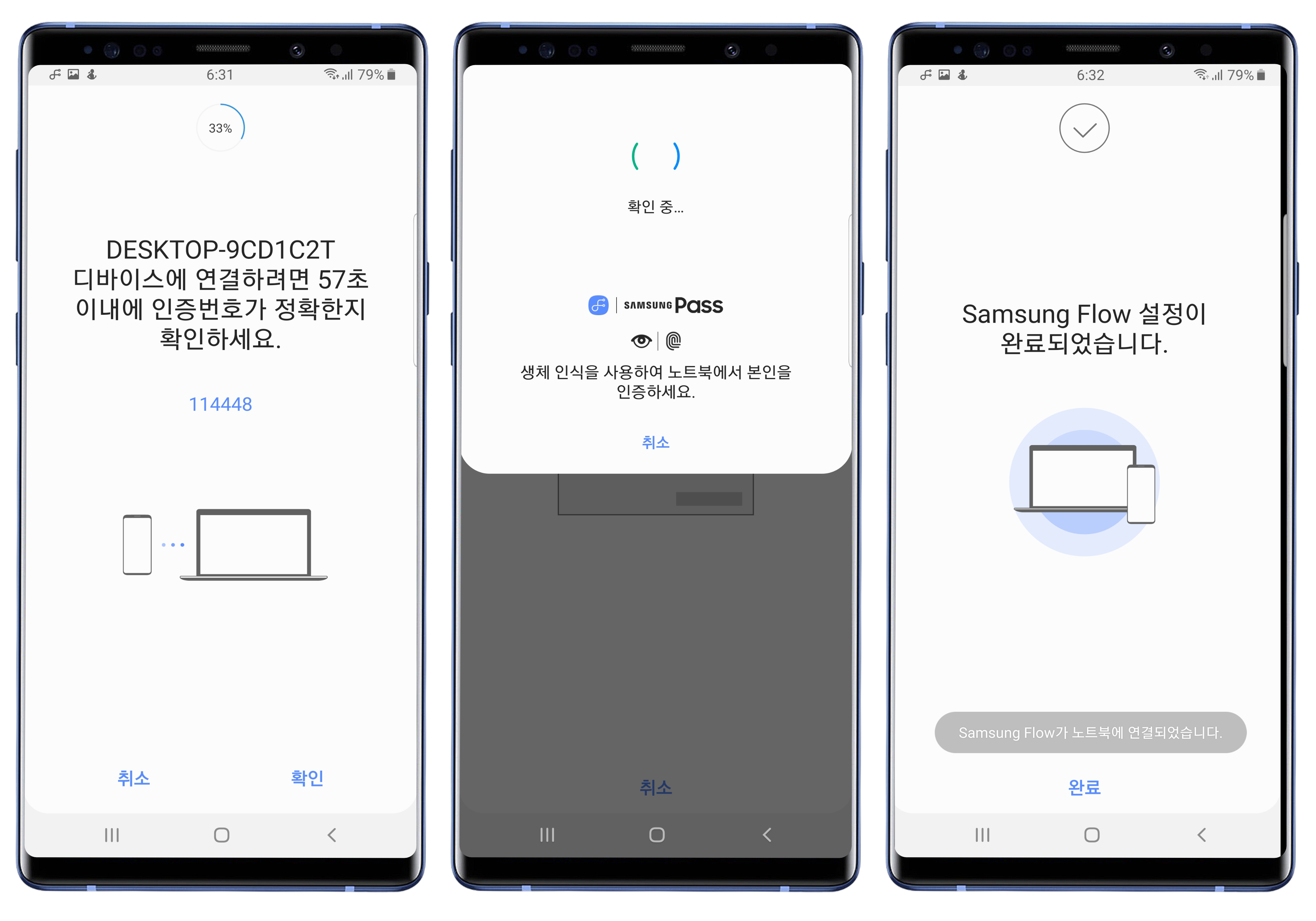 연결하려는 기기에 모두 삼성 플로우를 설치했다면, 휴대폰에서 앱을 실행하여 절차에 맞게 연결을 진행합니다.