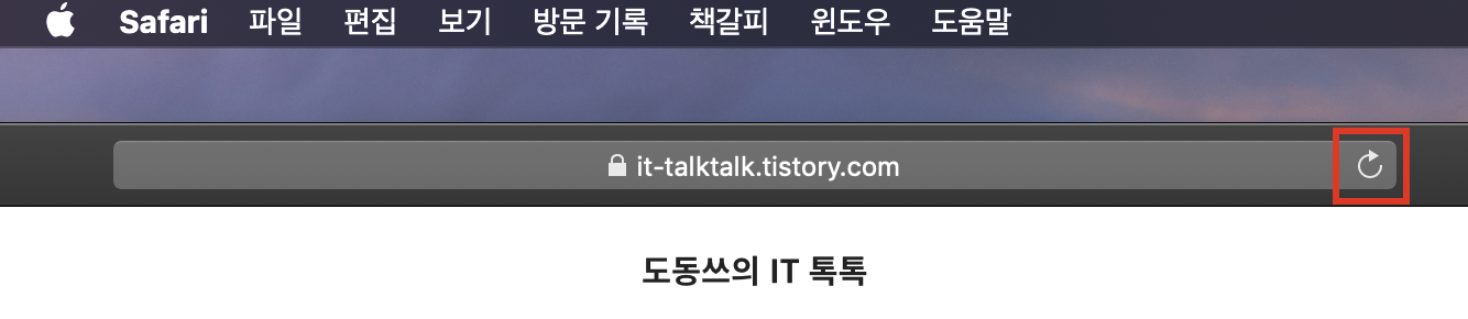 키보드를 사용하는 방법도 기본적으로 윈도우에서 사용하는 F5 키가 맥에서도 일부 브라우저에서 동일하게 작동합니다. 다만, 펑션 키(fn)를 누른 상태에서 F5를 눌러야 합니다. (fn + F5)