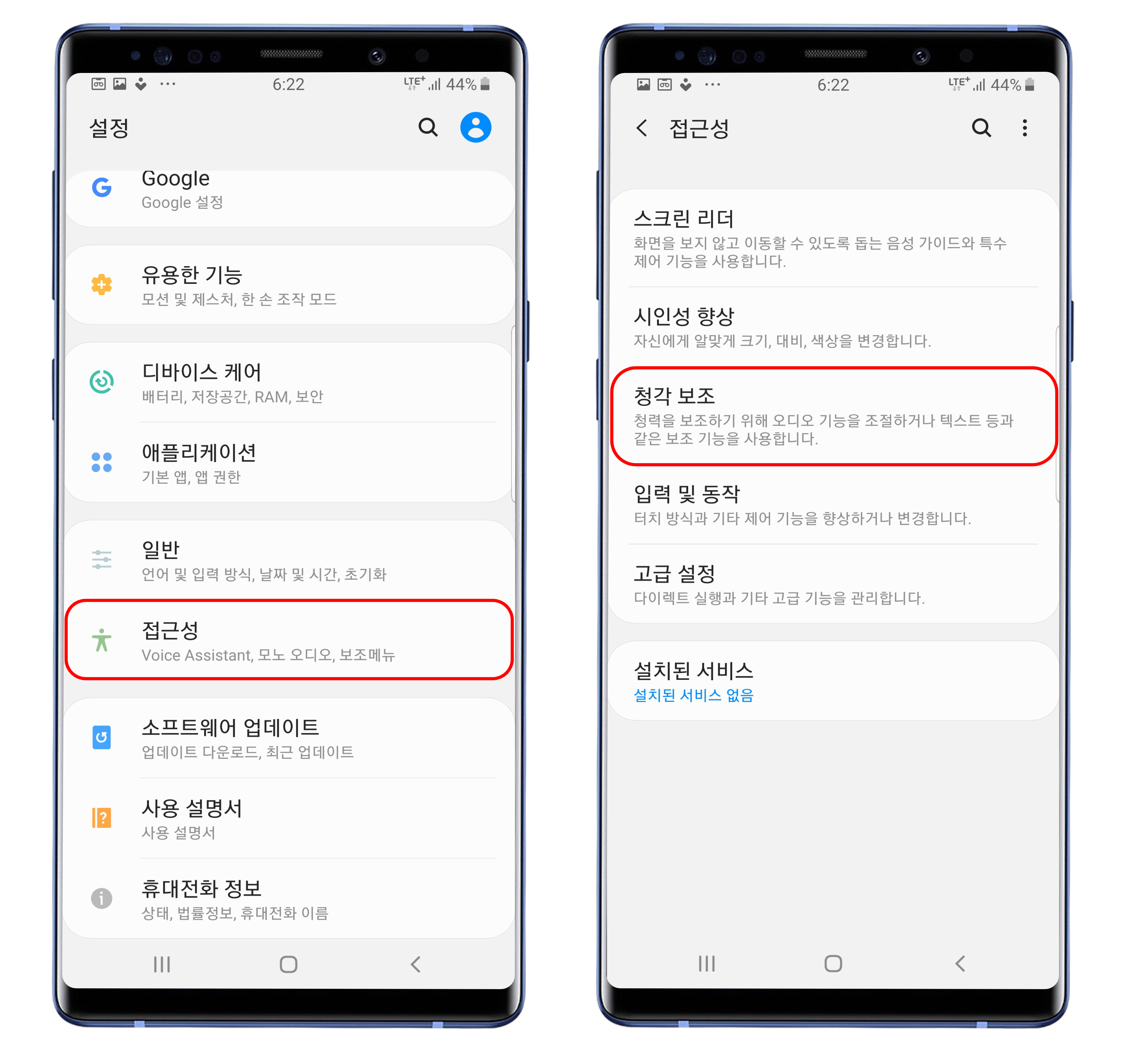 설정 앱을 열고, 접근성 - 청각 보조로 진입합니다.
