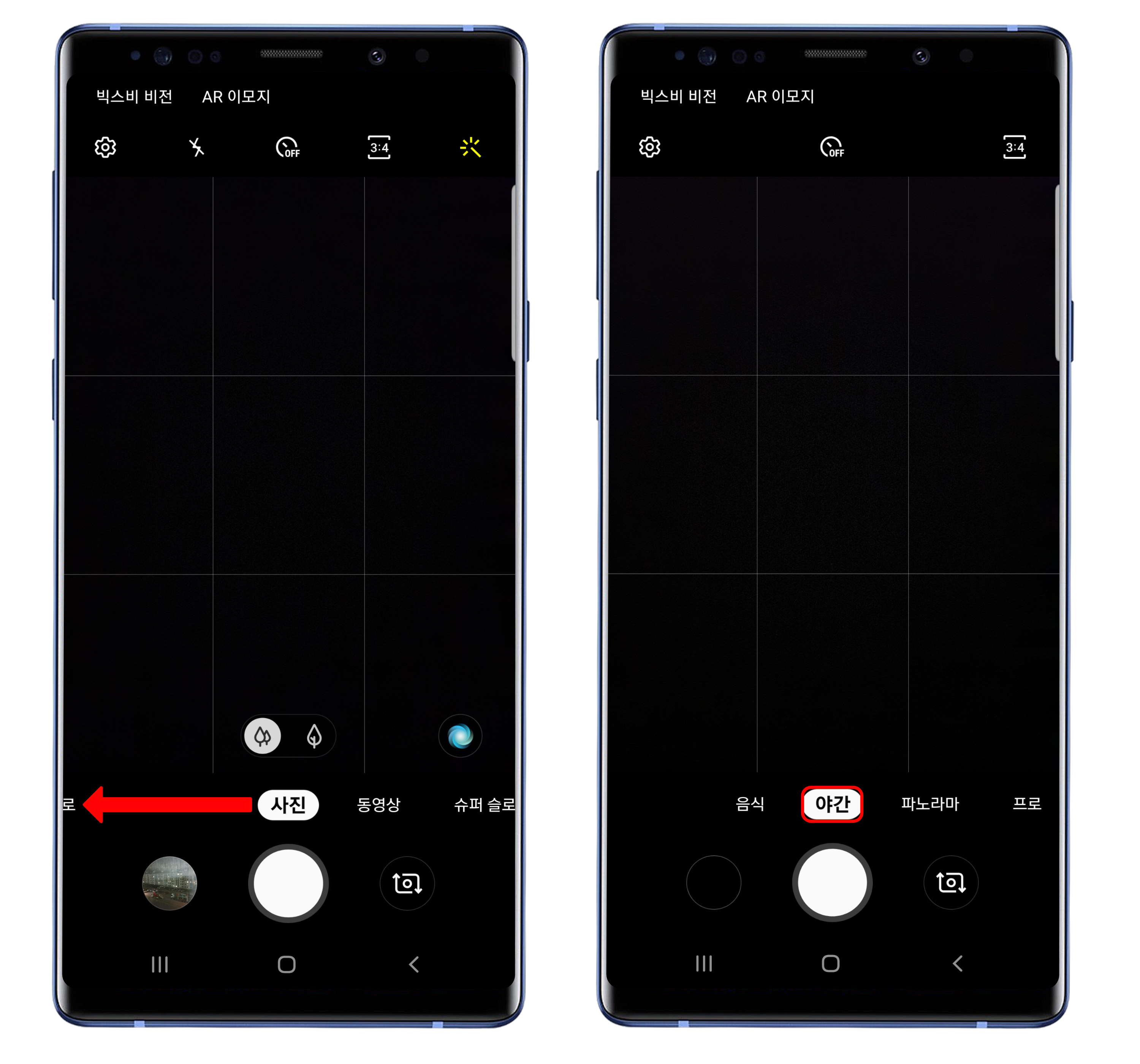 업데이트가 완료된 이후에 카메라를 실행하여 왼쪽으로 모드를 변경하면 야간 모드가 추가된 것을 확인할 수 있습니다. 야간 모드를 이용해서 사진을 촬영할 경우, 어두운 환경에서도 상대적으로 밝고 선명한 결과물을 얻을 수 있으니 활용해보시는 것을 추천해드립니다.
