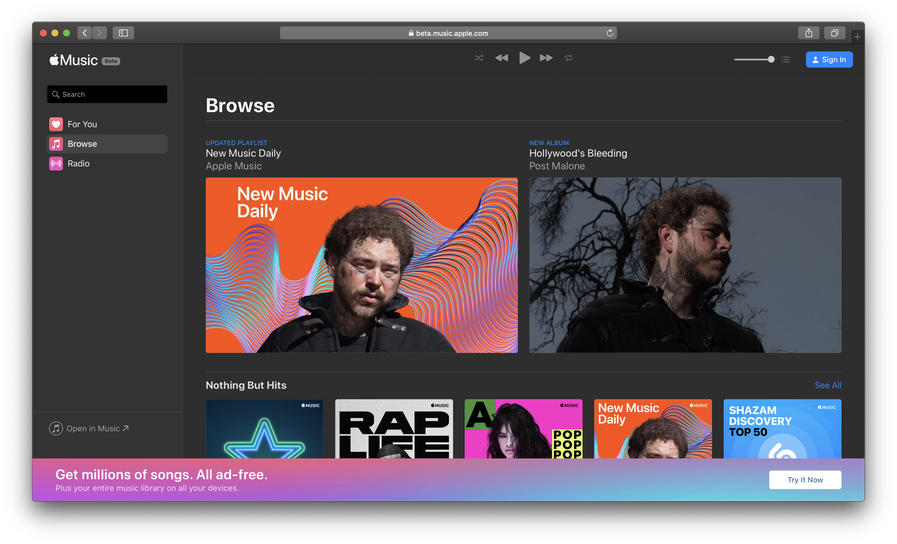 당연히 모바일뿐만 아니라 PC 버전의 웹 버전에서도 문제없이 작동합니다. 또한, 전체적인 UI도 기존의 iTunes과 비슷해서 사용성도 크게 떨어지지 않을 것 같습니다. (물론 현재는 베타 버전이기 때문에 오류가 있을 수 있습니다)