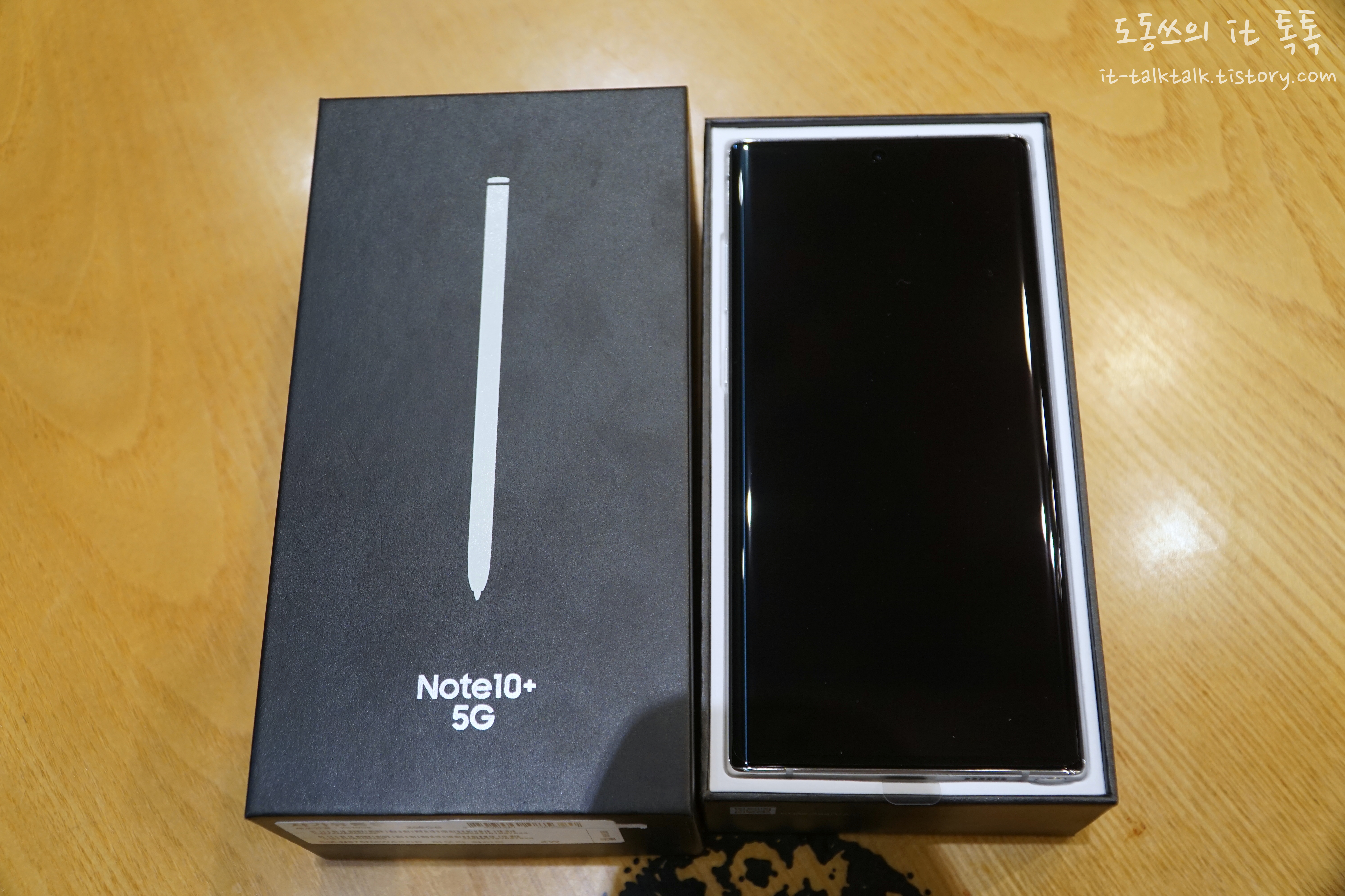 박스를 열면, 안쪽에 갤럭시 노트10+ 기기가 보입니다.