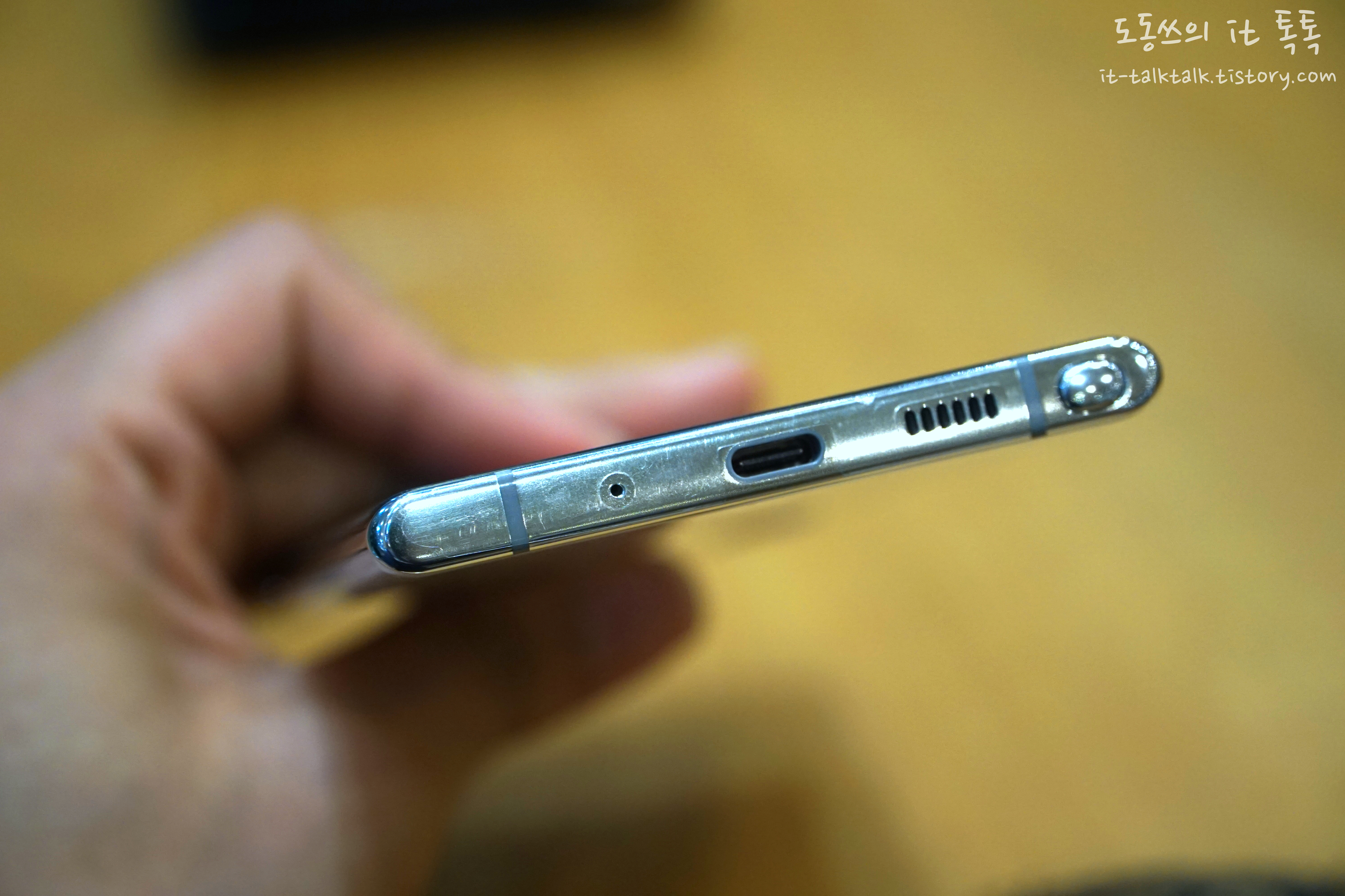 하단에는 기존에 있던, 3.5 파이 이어폰 단자가 사라진 것이 가장 큰 특징인 것 같아요.