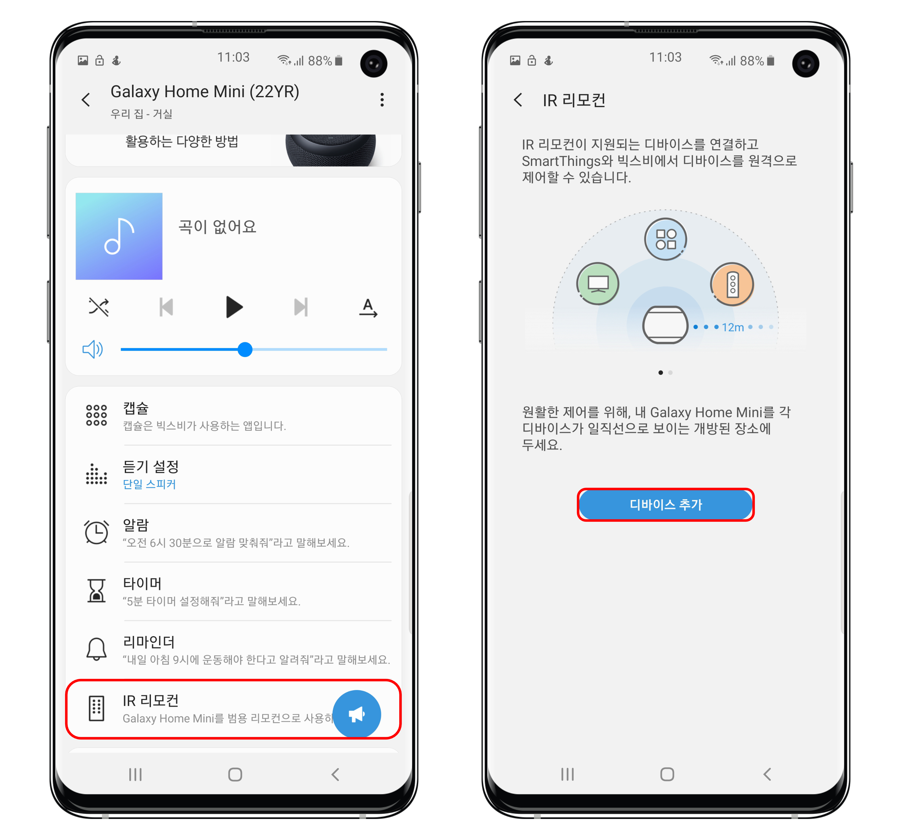 갤럭시 홈 미니의 IR 리모컨 기능이 뭐죠?