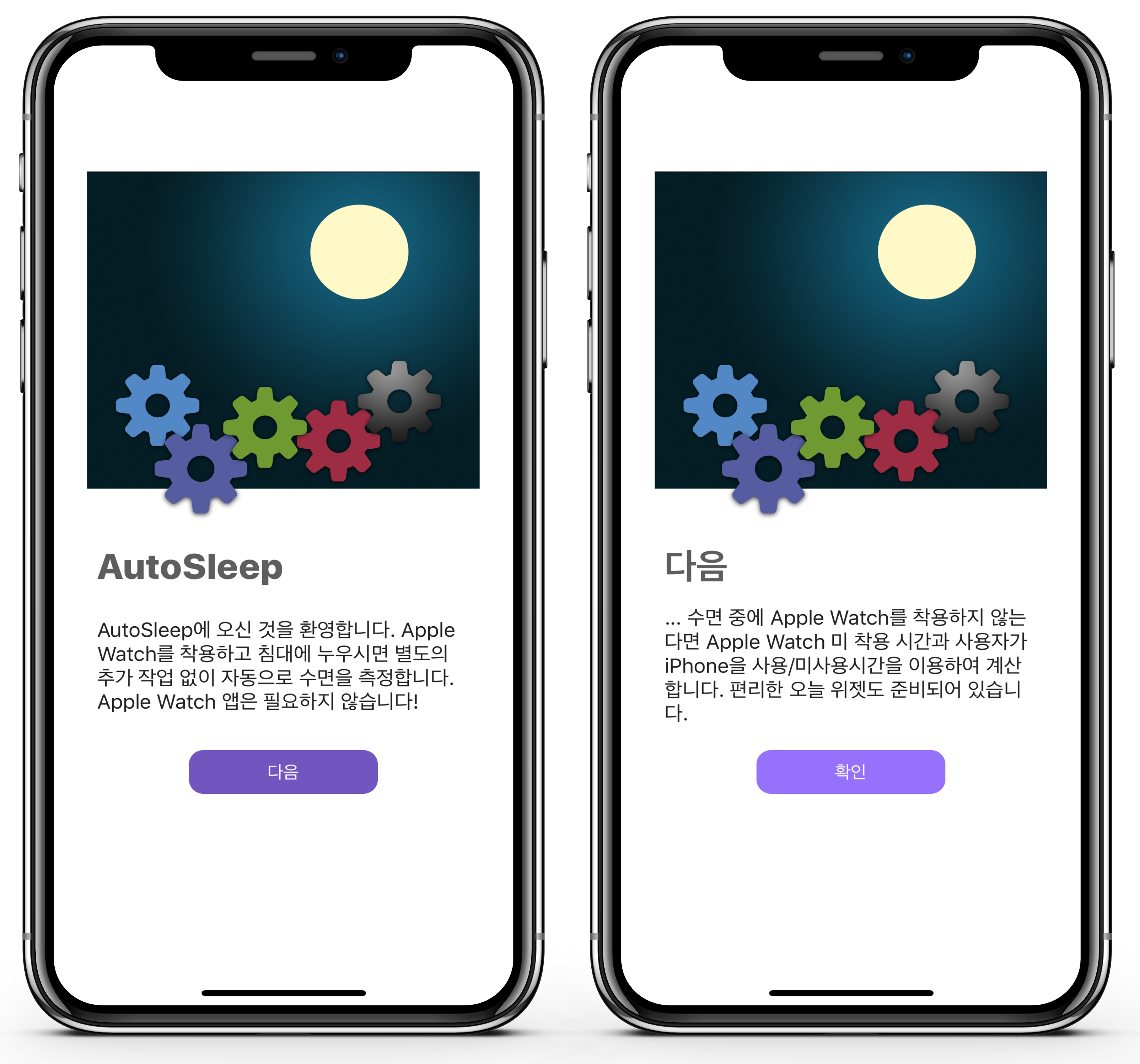 AutoSleep 앱을 처음 시작하면, 앱에 대한 간단한 설명 및 권한 허용 등의 메뉴가 나오는데요. 특별하게 어려운 설정은 없으니, 설명을 보고 차근차근 넘어가면 됩니다.
