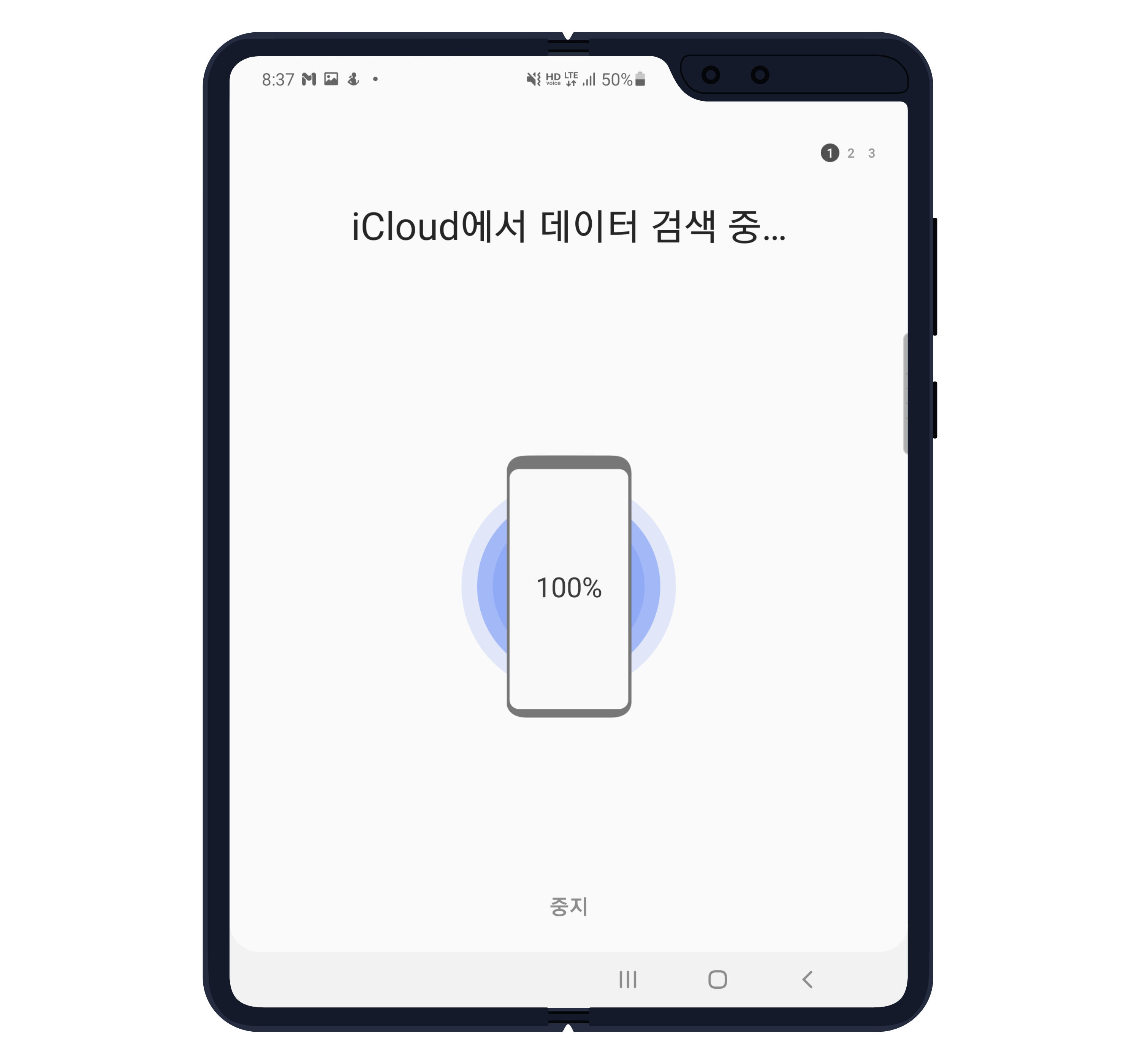 iCloud 서버와 연결된 후에는 콘텐츠 전송이 진행됩니다. 인터넷 연결이 원활하지 않거나 서버가 불안정한 경우에는 오류가 발생할 수 있으니 참고하시면 좋을 것 같습니다. 이런 경우에는 유선 전송 기능을 활용해보세요.