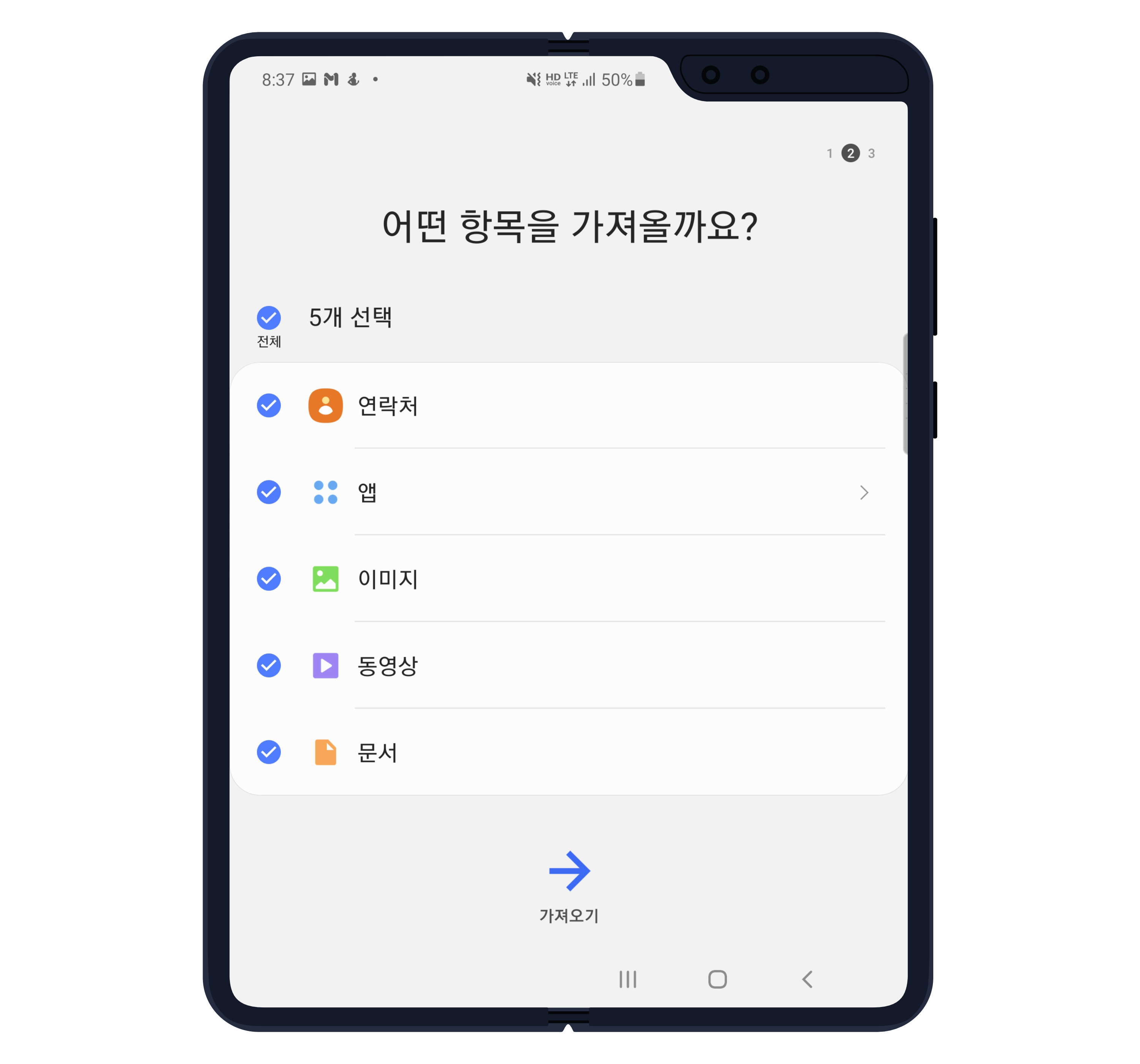 이제 여러분이 옮기고 싶은 데이터를 선택한 후, 하단의 가져오기를 누릅니다.