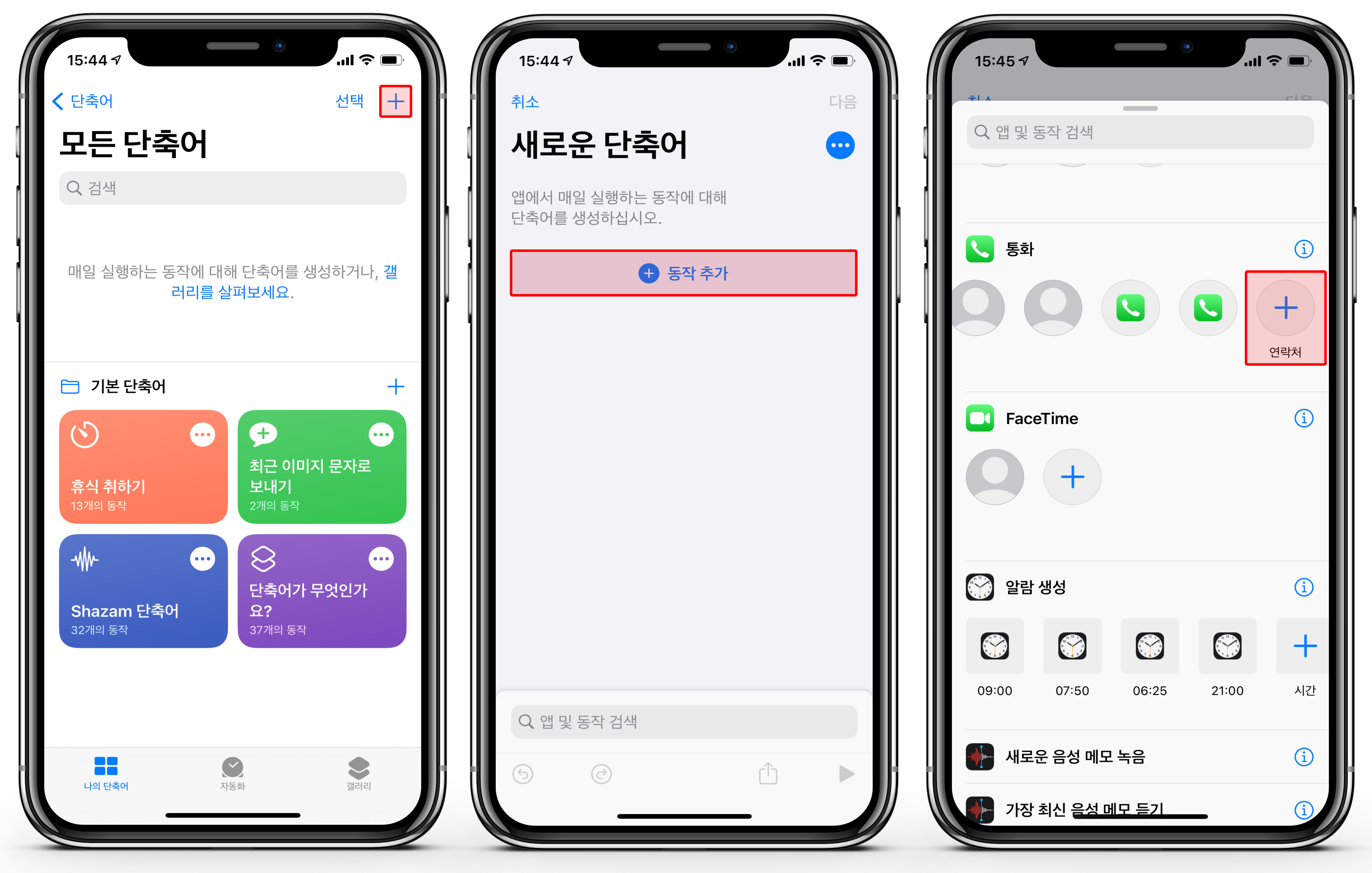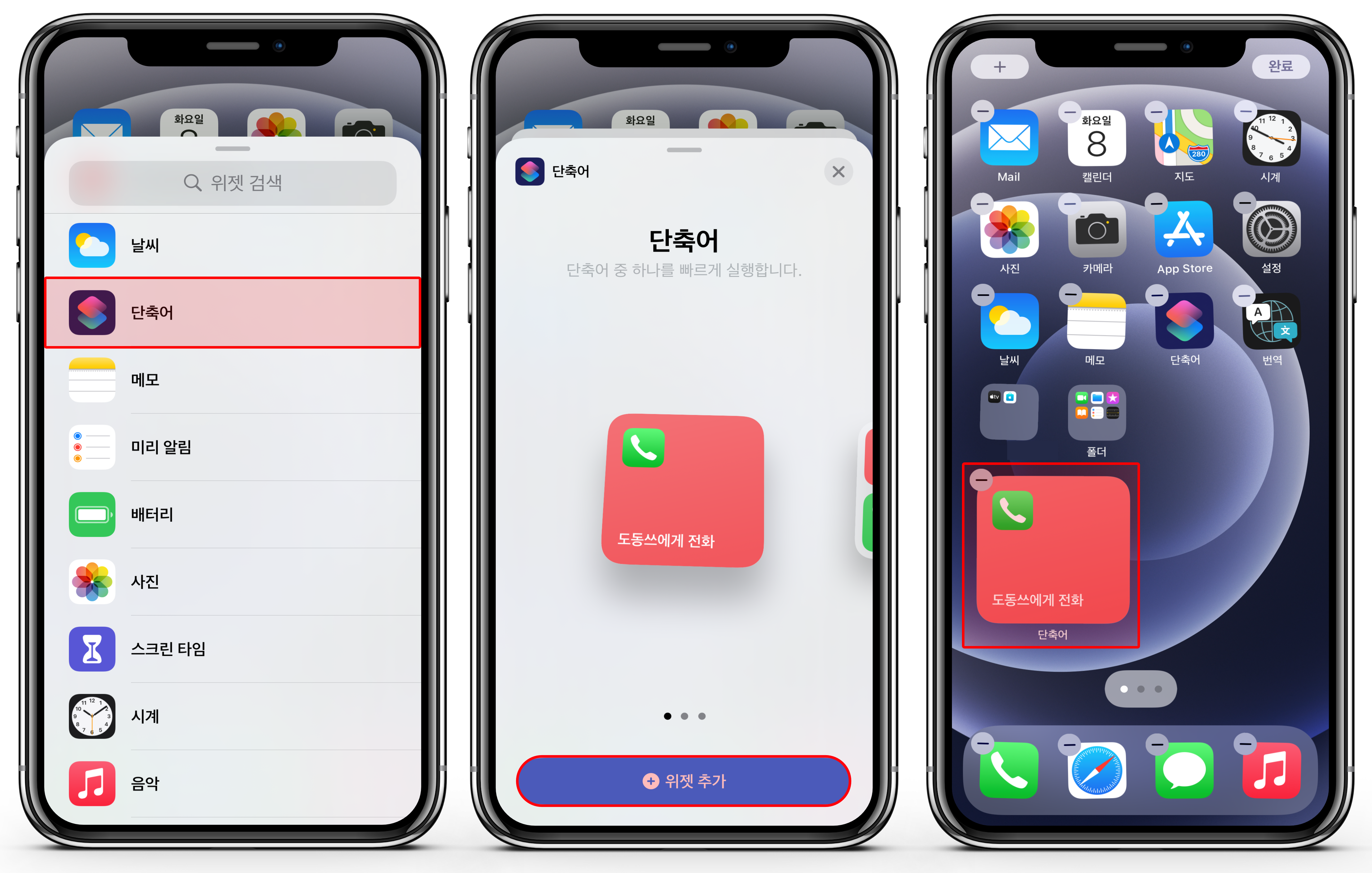 이렇게 추가한 단축어를 가볍게 탭 하면, 등록된 연락처로 손쉽게 전화할 수 있습니다.